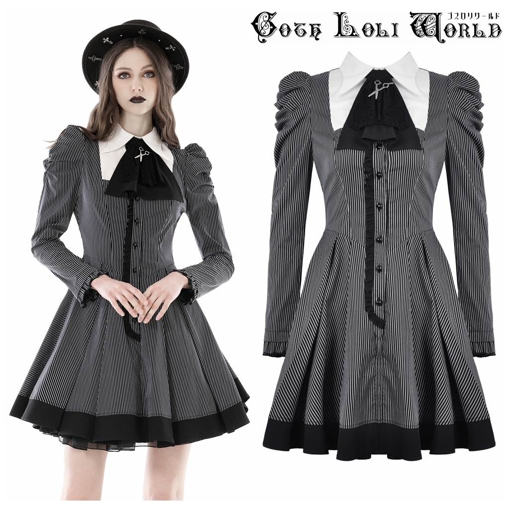 - 即納 DW845-XS 細めストライプ シザーチャーム ジャボ付 ワンピース レディース ファッション ゴシック ゴスロリ