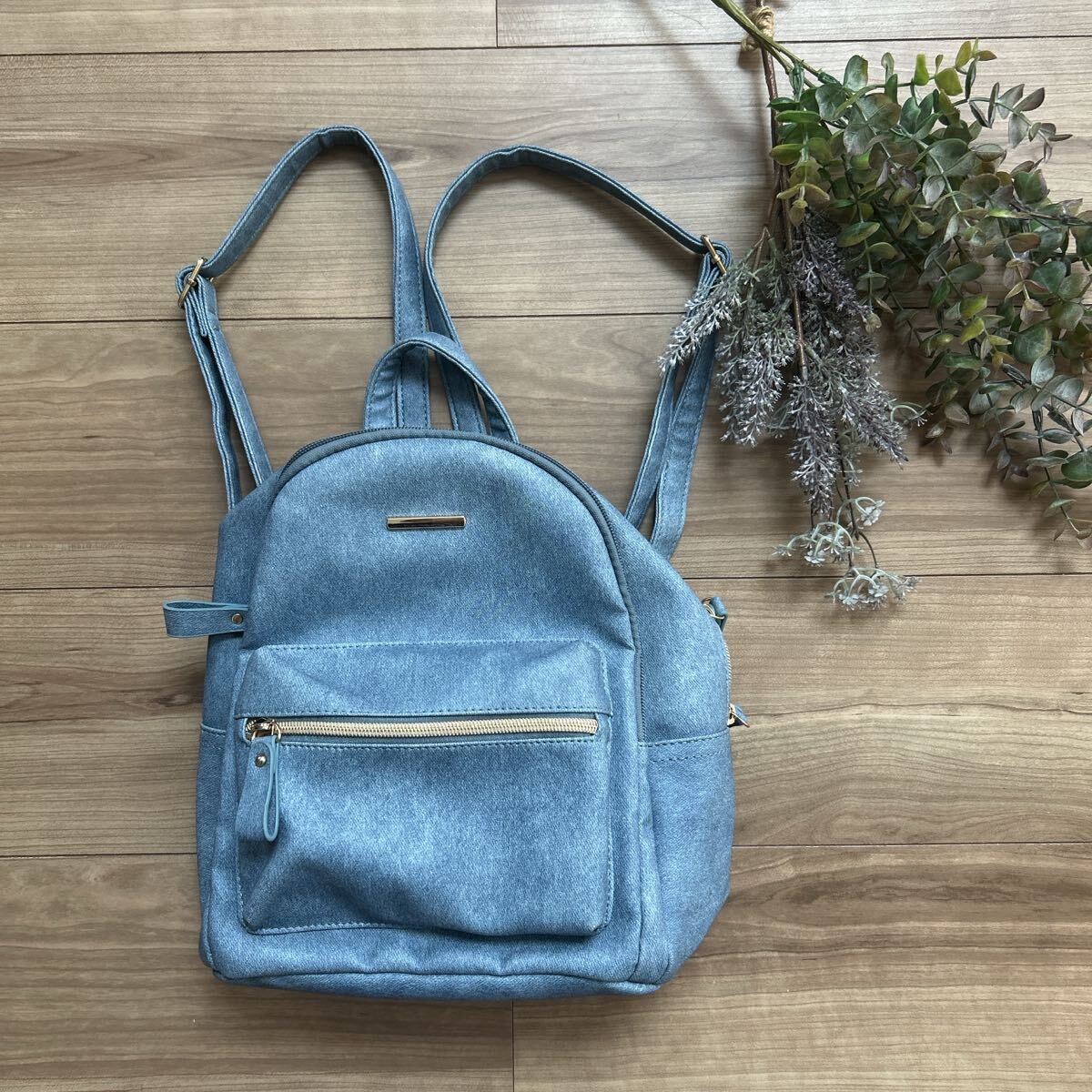 - ライトブルー デニム風リュック