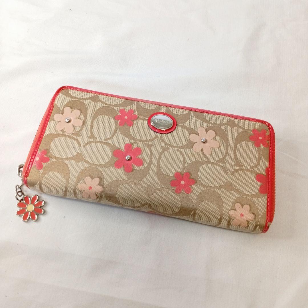 - COACH コーチ 長財布 ベージュ×レッド 花柄 ラウンドファスナー 送料無料 正規品 鑑定済み 人気ブランド 限定セール