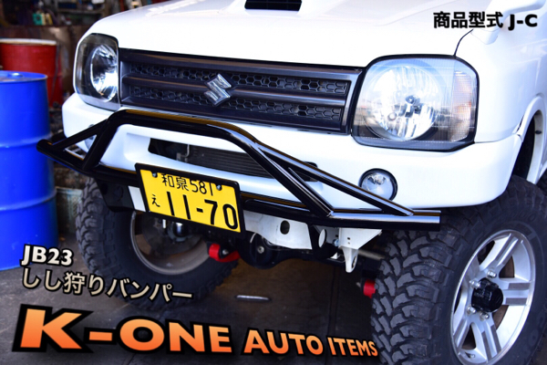 - 国内生産品 ジムニー JB23 フロント しし狩り バンパー 牽引フック 艶有り黒 シシガリ 猪狩り ブラック 黒 Aバンパー JB23W パイプバンパー