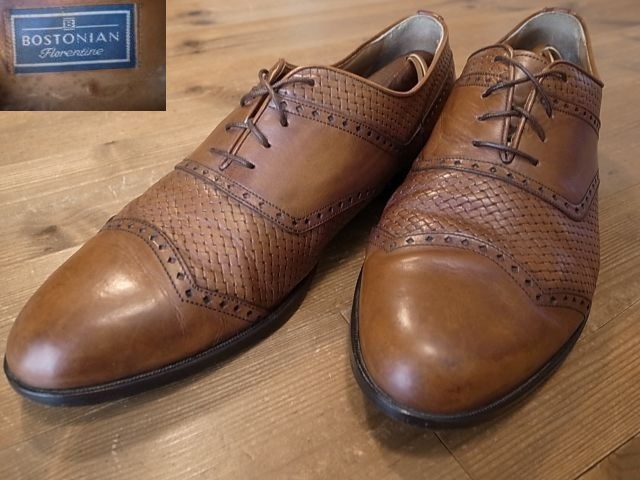 - イタリア製 BOSTONIAN ボストニアン Florentine 革靴 茶 編み込みデザイン パンチドキャップトゥ レザーシューズ USA仕入 サイズ 11M 29㎝