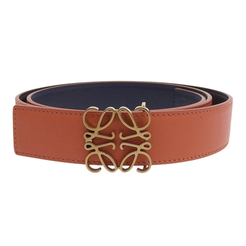 - ロエベ LOEWE ベルト アナグラム レザー オレンジ ネイビー 95/38 中古 新入荷 OBB0616