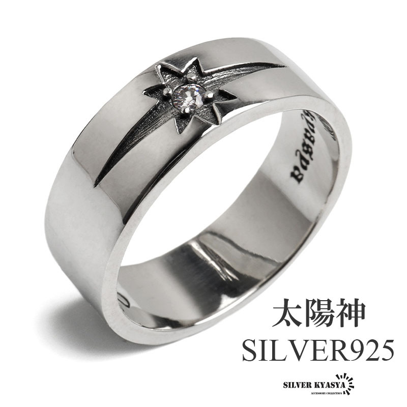 - (8号) シルバー925 太陽神リング シルバーリング ネイティブ メンズリング 一粒ストーン 男性 金アレ対応