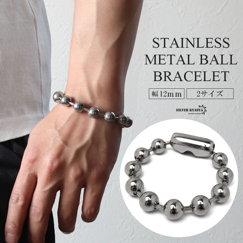 > (21.5cm) ステンレス ラージボールブレスレット チェーンブレスレット 大ぶり シルバー 12mm メンズ 金アレ対応