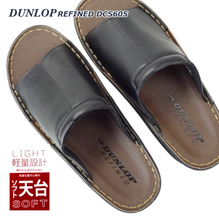 > メンズ つっかけ サンダル ダンロップ リファインド DCS605 ブラック 黒 S 24.0cm〜24.5cm 紳士 軽い コンフォート オフィス スリッパ用