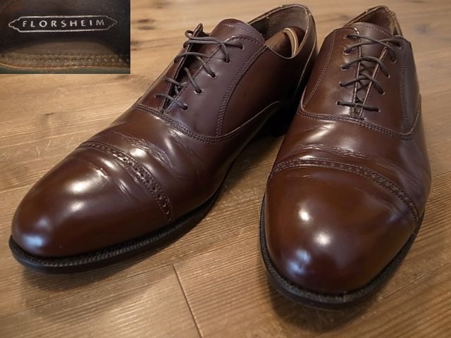 - 美品 FLORSHEIM フローシャイム 革靴 茶 青窓 ビンテージ ストレートチップ パンチドキャップトゥ レザーシューズ サイズ 11D 約29㎝