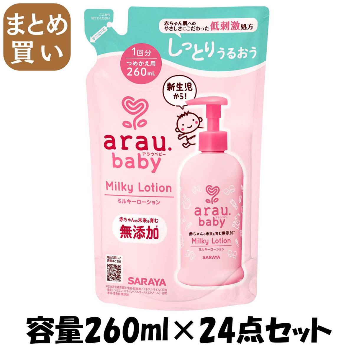 - 【まとめ買い】アラウベビー ミルキーローション 詰替用 260mL 容量260ML×24点セット サラヤ ベビー用品