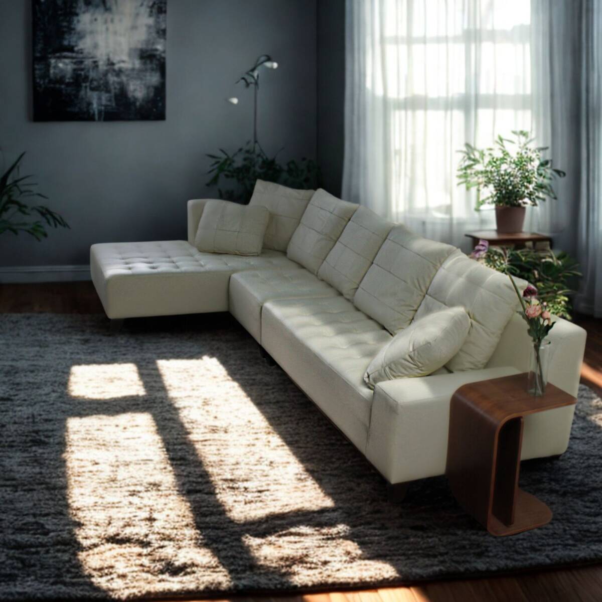 - 送料無料 ソファ カウチソファ 4人掛けソファ コーナー L字 オフホワイト 幅306cm 【カウチ座:座って右】 本革 半革 1mm厚 179DP-2PCl