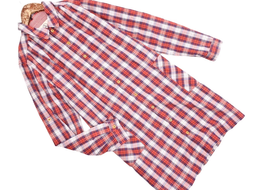 - AIGLE エーグル チェック チュニック ブラウス シャツ sizeM/赤 ■◇ ☆ fgd1 レディース