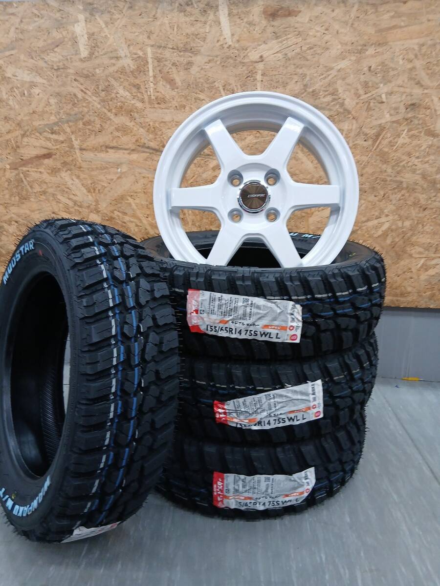 > 新品セット★S-6(ホワイト)14×4.5J+45 100-4H★マッドスターM/T 155/65R14★デリカミニ・キャリー・ハイゼット・エブリー・アトレー★G