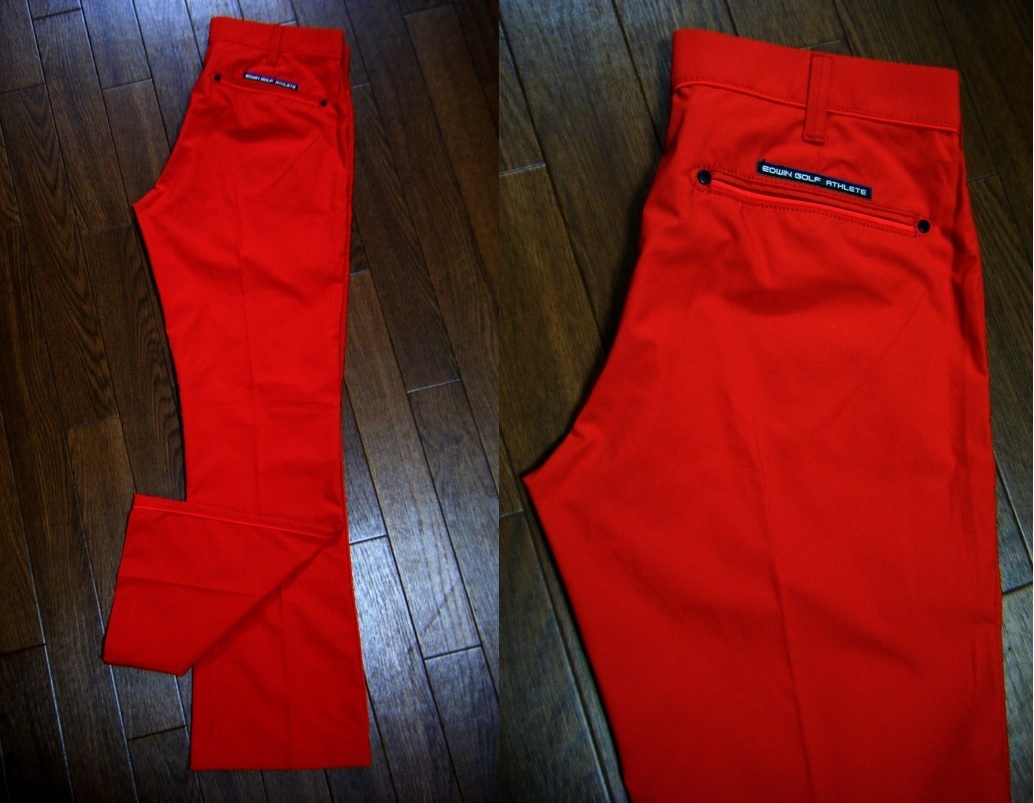 - 伸縮/良品〇EDWIN GOLF ストレッチパンツ M (w78) 滑り止め 刻印リベット ブランドロゴ 赤色
