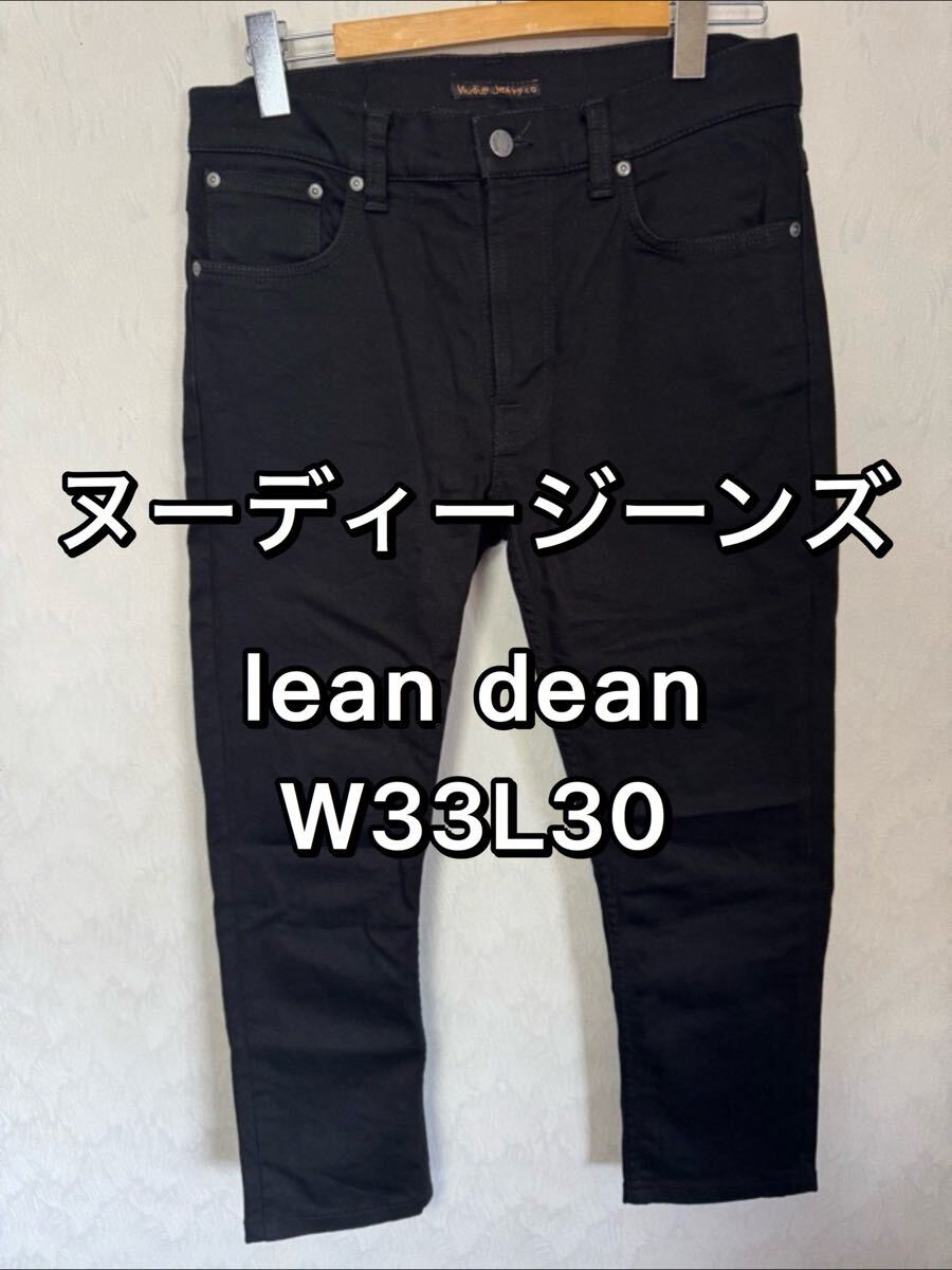 > ヌーディージーンズ leandeanリーンディーン DRY EVER BLACK W33 L30 デニム 紙ラベル チュニジア製