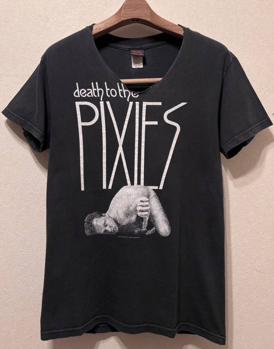 > C)2004年00sオールドPIXIESカットオフVネックTシャツS丸胴ヘビーウェイトMEXICO製USA製コットン黒フェード墨黒y2k00年代2000sビンテージ90s