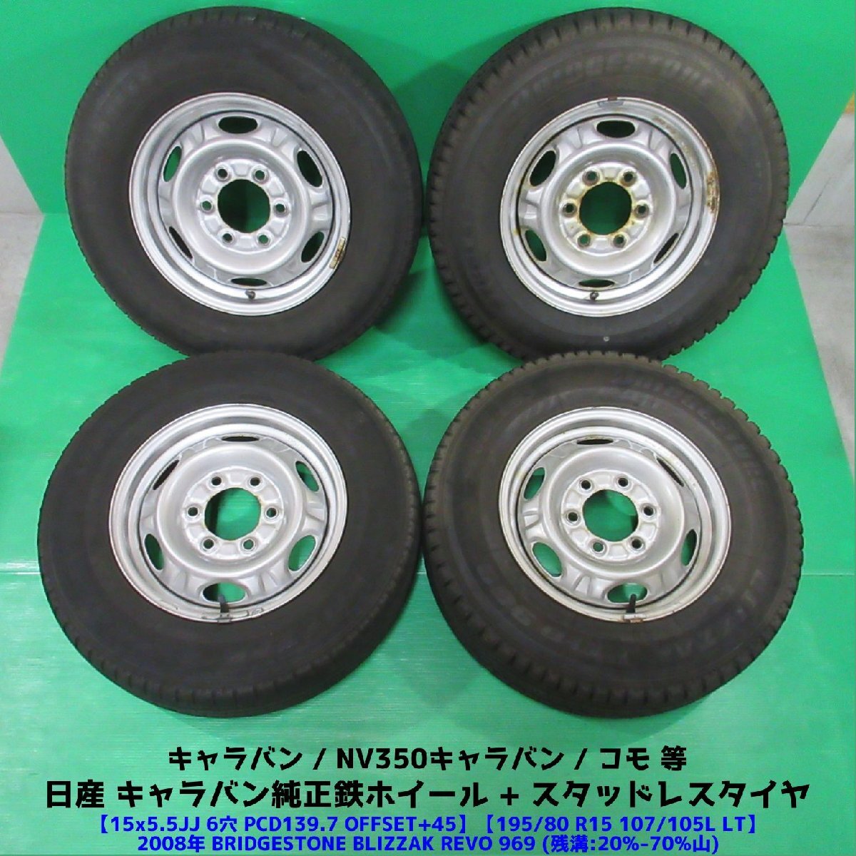 - 日産 キャラバン純正 195/80R15 スタッドレス タイヤ要交換 BRIDGESTONE BLIZZAK REVO 969 4本 6穴PCD139.7 5.5JJ +45 NV350 中古新潟