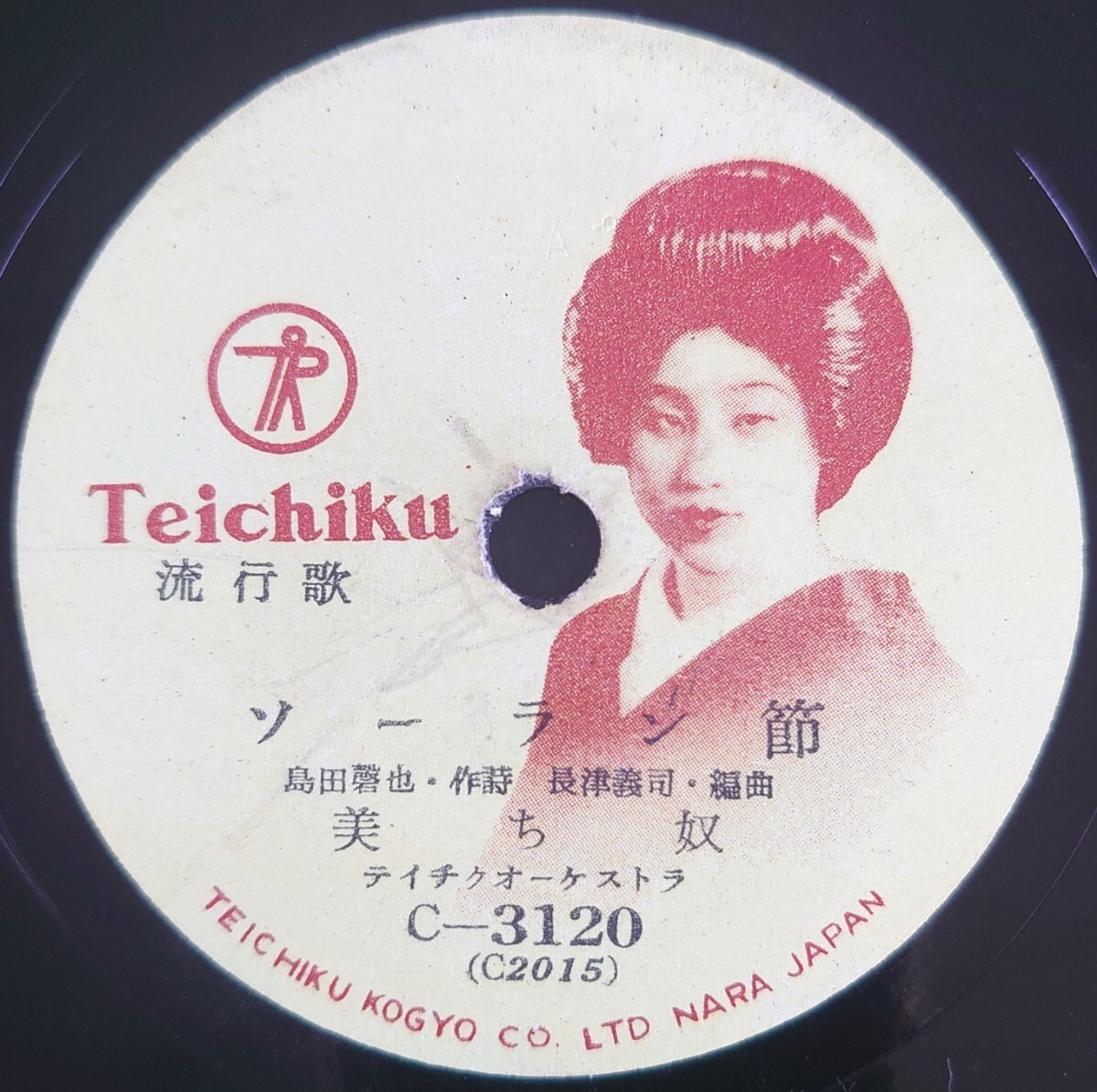 - 【SP盤レコード/ヒビ多】TEICHIKU C-3120 流行歌/ソーラン節/炭坑節/美ち奴
