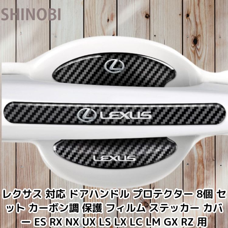 > レクサス 対応 ドアハンドル プロテクター 8個 セット カーボン調 保護 フィルム ステッカー カバー ES RX NX UX LS LX LC LM GX RZ 用