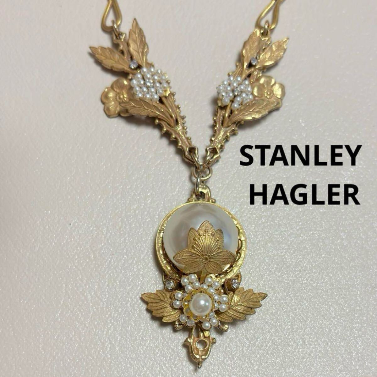 - 希少◇美品◇STANLEY HAGLER◇花模様パールネックレス◇ゴールド