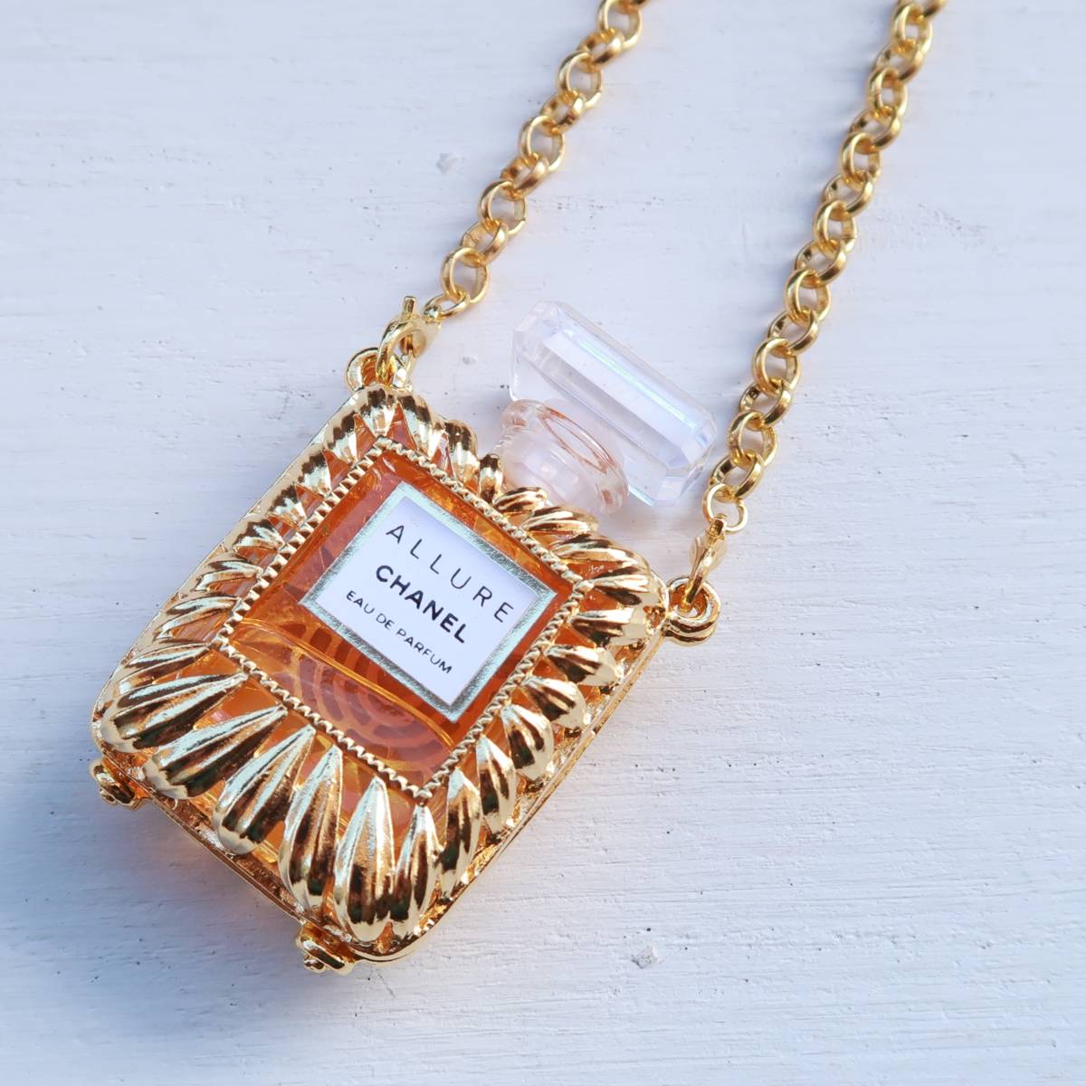 - シャネル CHANEL ALLURE アリュール フラワー デザイン 香水瓶 ミニボトル ネックレス ペンダント ゴールド ヴィンテージ レア 美品