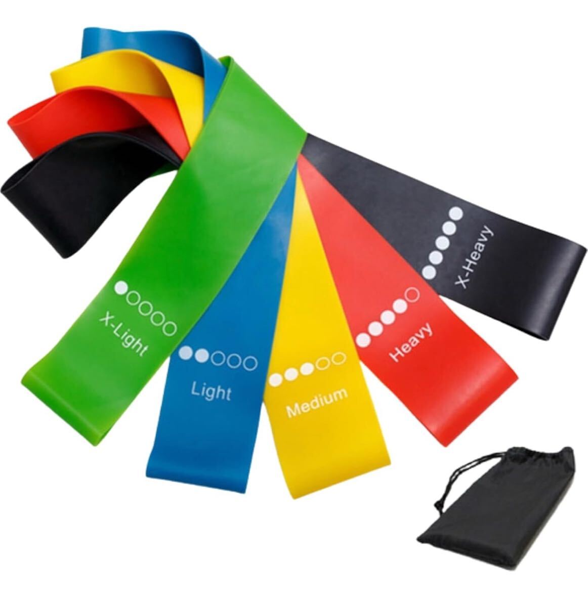 - 1円スタート トレーニングチューブ 5本セット|強度別 ゴムバンド 筋トレ 宅トレ ダイエット リハビリ対応 トレーニングイラスト付き説明書