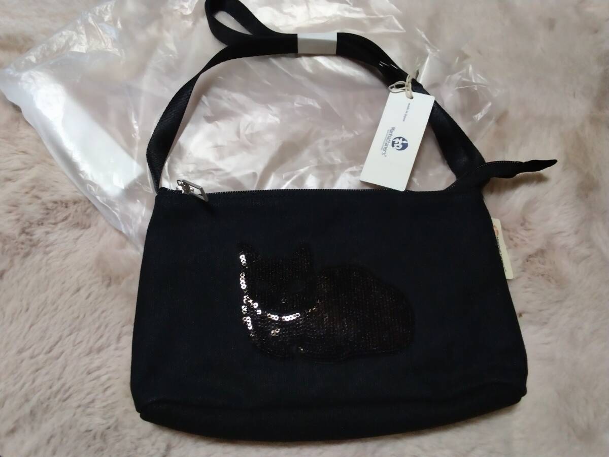 > ★半額★新品即決★定価7700円税込★和マンハッタナーズ 猫バッグ 猫 ショルダーバッグ スパンコール刺繍 黒 ブラック スパンコール