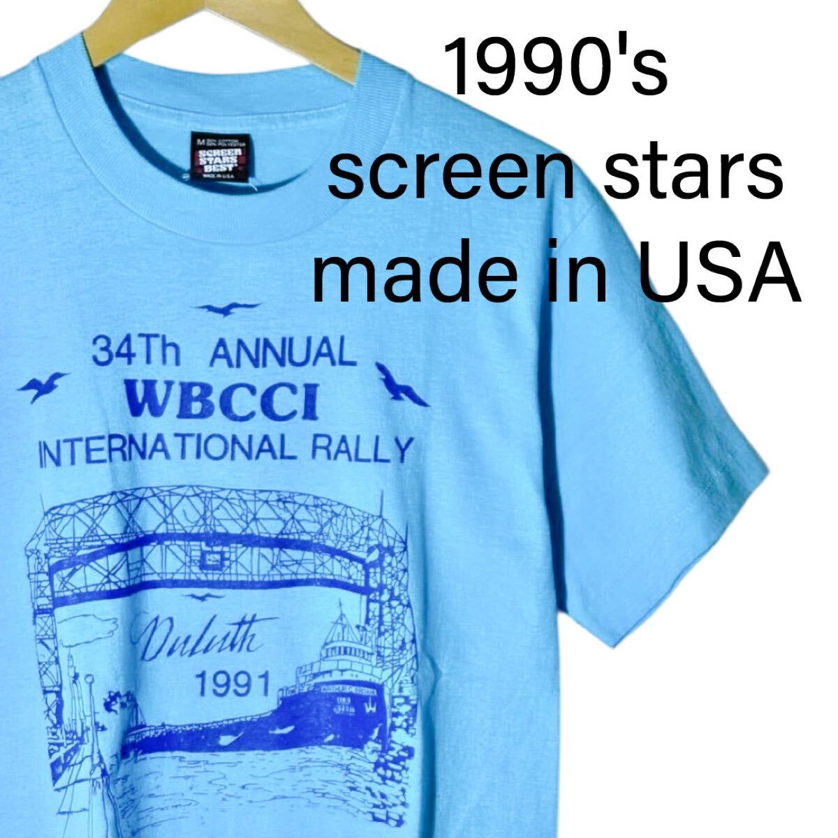 > USA製 1990's screen stars best ヴィンテージ Tシャツ シングルステッチ スーベニア 船 海 プリント WBCCI 水色 1991年 アメリカ 古着 M