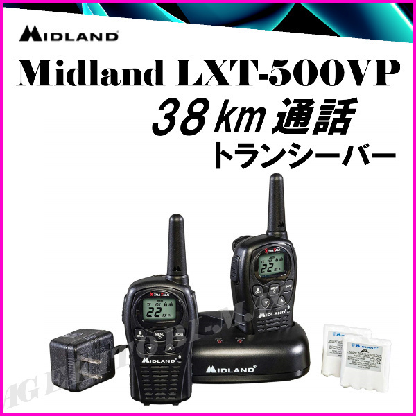 > 38キロ通話 充電器付 ハンディ トランシーバー 2台セット 新品 日本語説明書 ミッドランド 生活防水 Midland♪イヤホンマイク・電池使用可