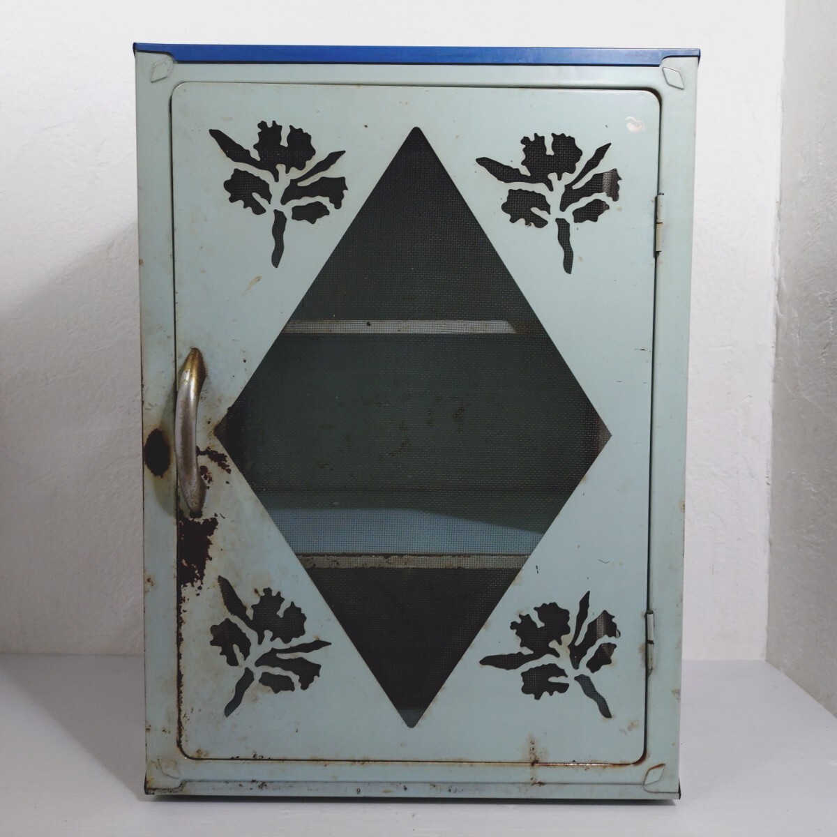 - 昭和レトロ 金属製 蚊帳棚 当時物 古道具 花柄