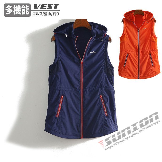 - アウトドア トップス レディース フート付き 多機能ベスト 前開きベスト 登山服 ベスト ゴルフ アウター 釣り アウトドアウエア