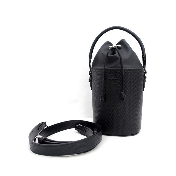 > ★ ラコステ CHANTACOコンビネーション レザー 巾着バッグ ハンドバッグ ブラック 中古 古着 NF3216C 000 (0220527727)
