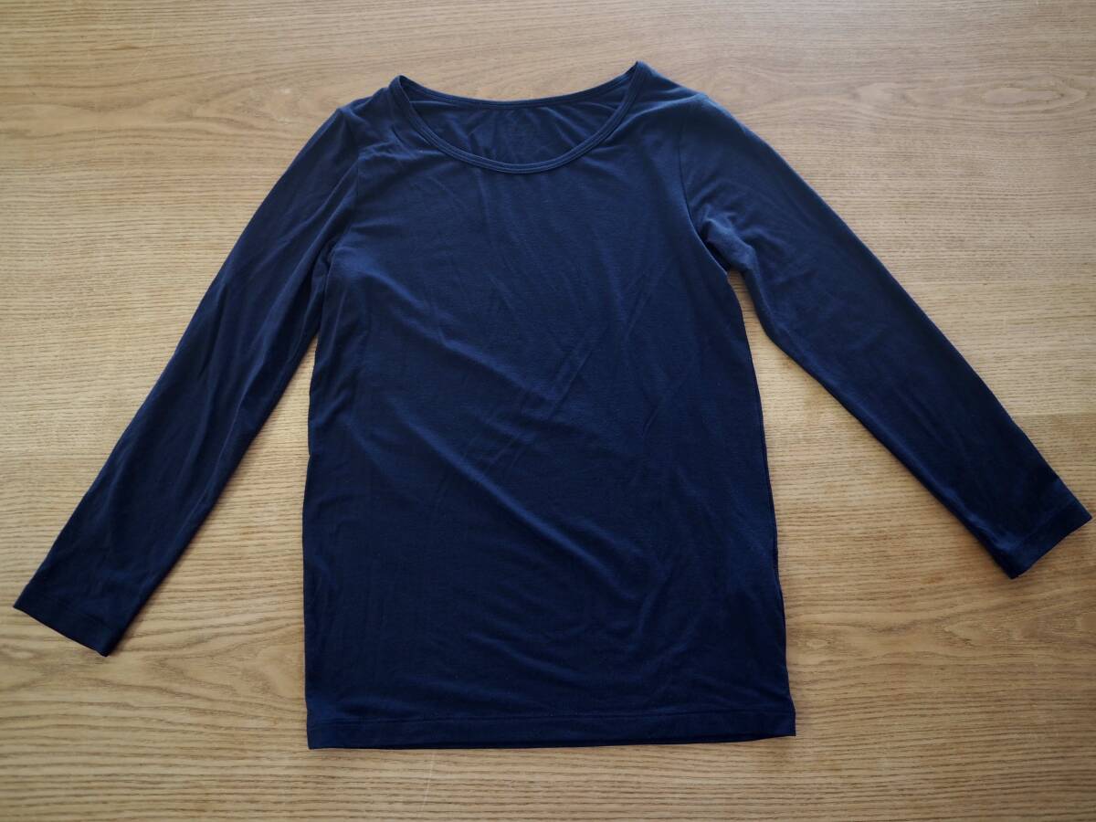 > 140cm 美品 UNIQLO ユニクロ ヒートテック ロングスリーブ 長袖インナー 肌着 ネイビー 紺 子供服 キッズ アンダーシャツ(送料185円)