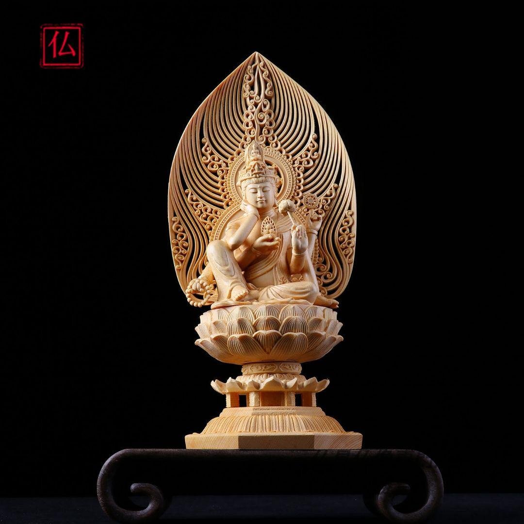 - 如意輪観音 仏教工芸品 木彫仏像 高さ30.5cm【送料無料】【仏具仏像専門店寶勝堂】