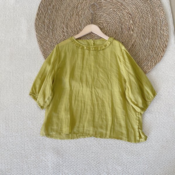 - lh 0708 ふんわり フリーサイズ チュニック ナチュラル レース 麻100% 大人可愛 サラサラ イエロー系