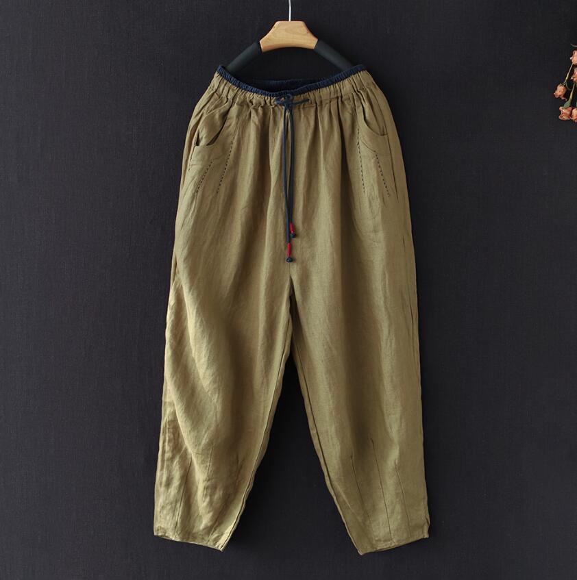 - 新入荷*カジュアル レディースパンツ リネンパンツ ゆるパンツ 体型カバー ワイドパンツ ウエストゴム 通勤 合わせやすい お出かけ*緑