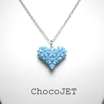 - スワロフスキーハートネックレス ターコイズブルークリスタルビーズ 青色水色