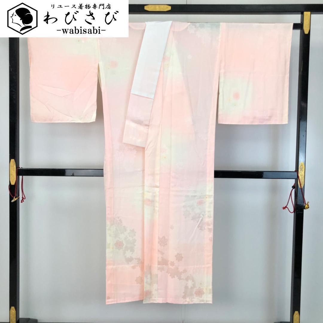 > 長襦袢 花模様 乙女色 半衿付 J-319 着物 きもの kimono 和服 和装 中古 リサイクル着物 【送料無料】