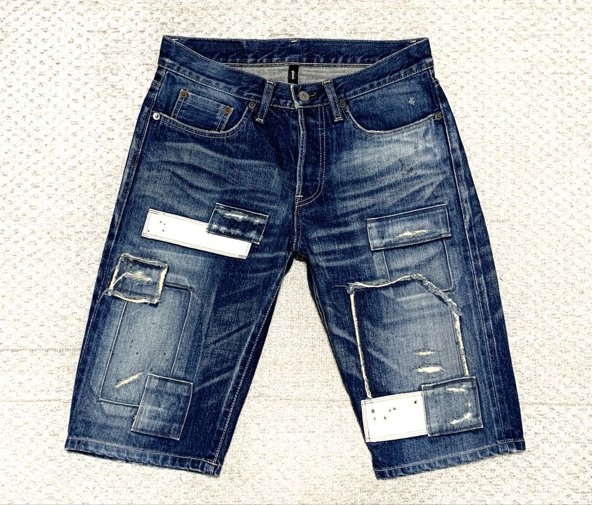 - 極上:glamb(グラム).リペア加工 デニム ショート パンツ 1(S/ショーツ/W80股下31/パンク/V系/tornado mart cambio lgb kmrii type/日本製)
