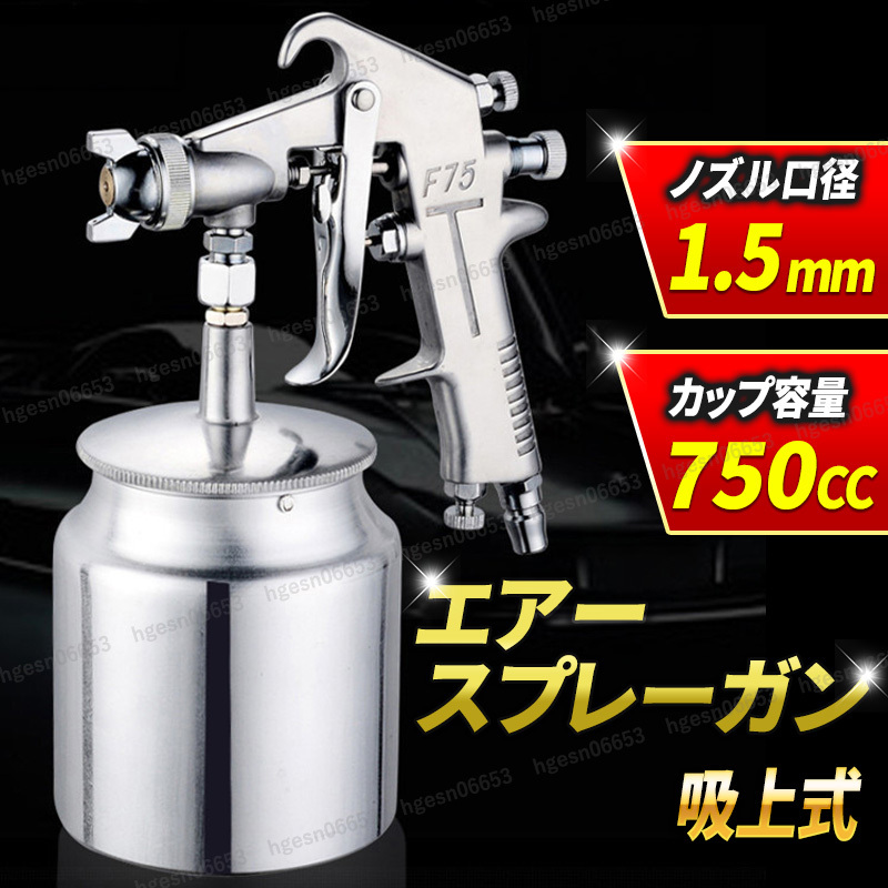 > エアースプレーガン スプレーガン 口径1.5mm 吸上式 750cc 吹出量 グリップタイプ パターン調整 サイフォン式 DIY 工具 プラモデル アート