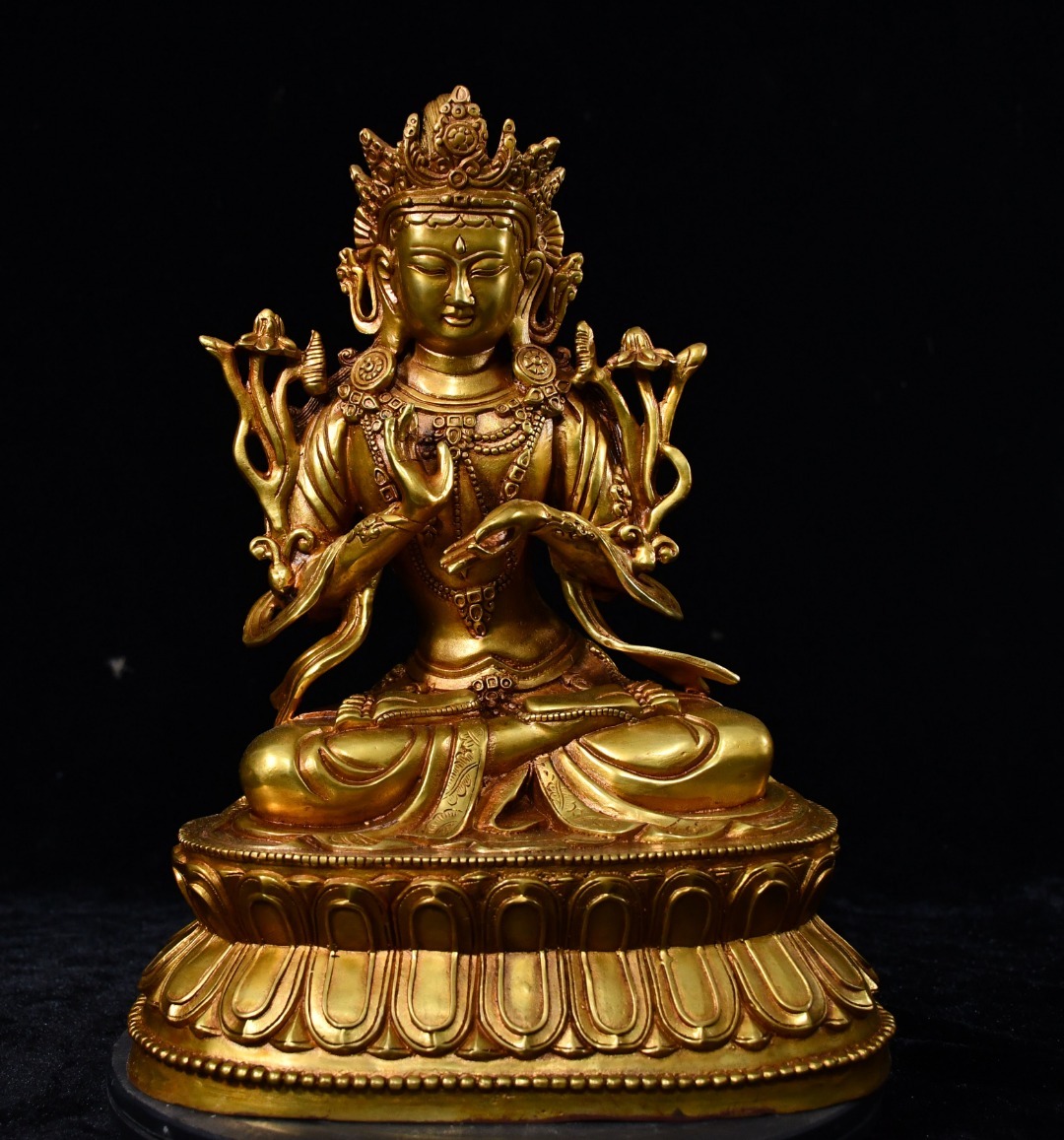 - 唐物 大明 永樂年製 銅仏像 大持金剛度母仏像 精銅鑄造 通體塗金 仏像 奉納されていた 供養品 銅製 古美術品 時代物 中国古玩 骨董品 D68