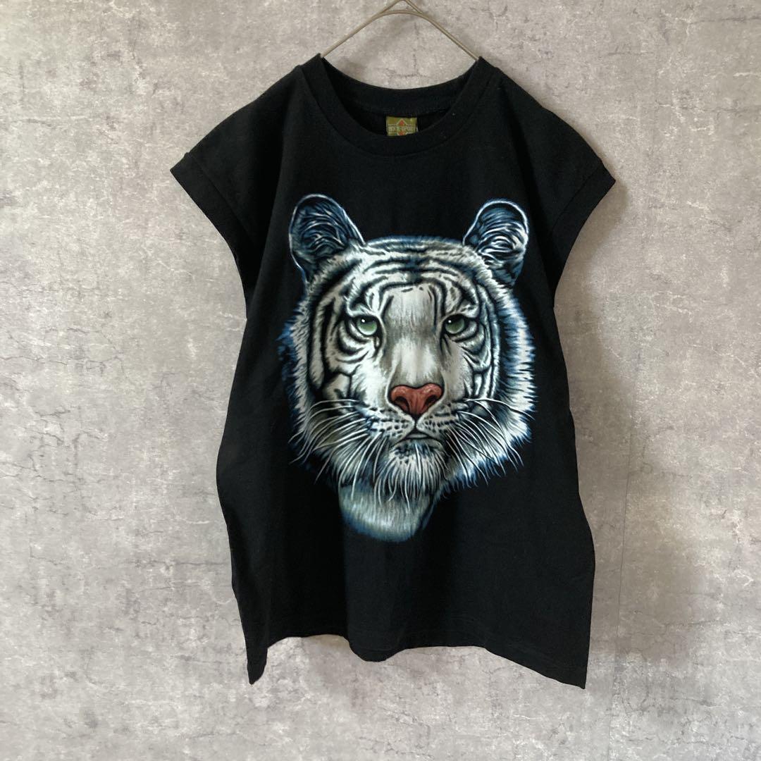 - ROCK-SPORT ホワイトタイガーTシャツ 半袖 黒 Sサイズ相当