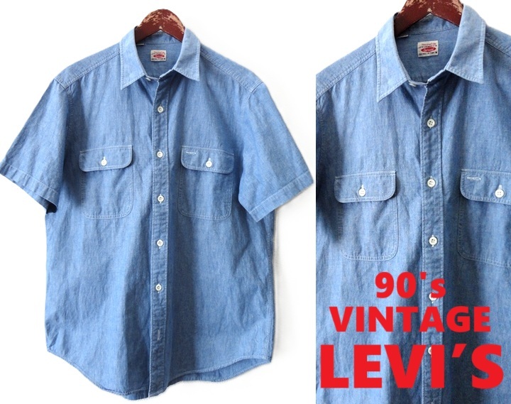- 90's ヴィンテージ■香港製■LEVI'S:リーバイス■1991年製造■シャンブレー 半袖 ワークシャツ■ブルー系■Msize■プリズナーシャツ