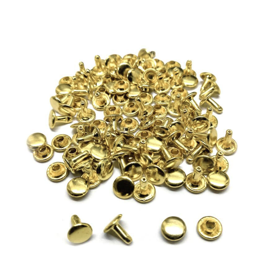 - レザークラフト カシメ 金具 両面 頭7mm 足7mm 50組 /ライトゴールド/手芸 キット パーツ 革 材料 かしめ
