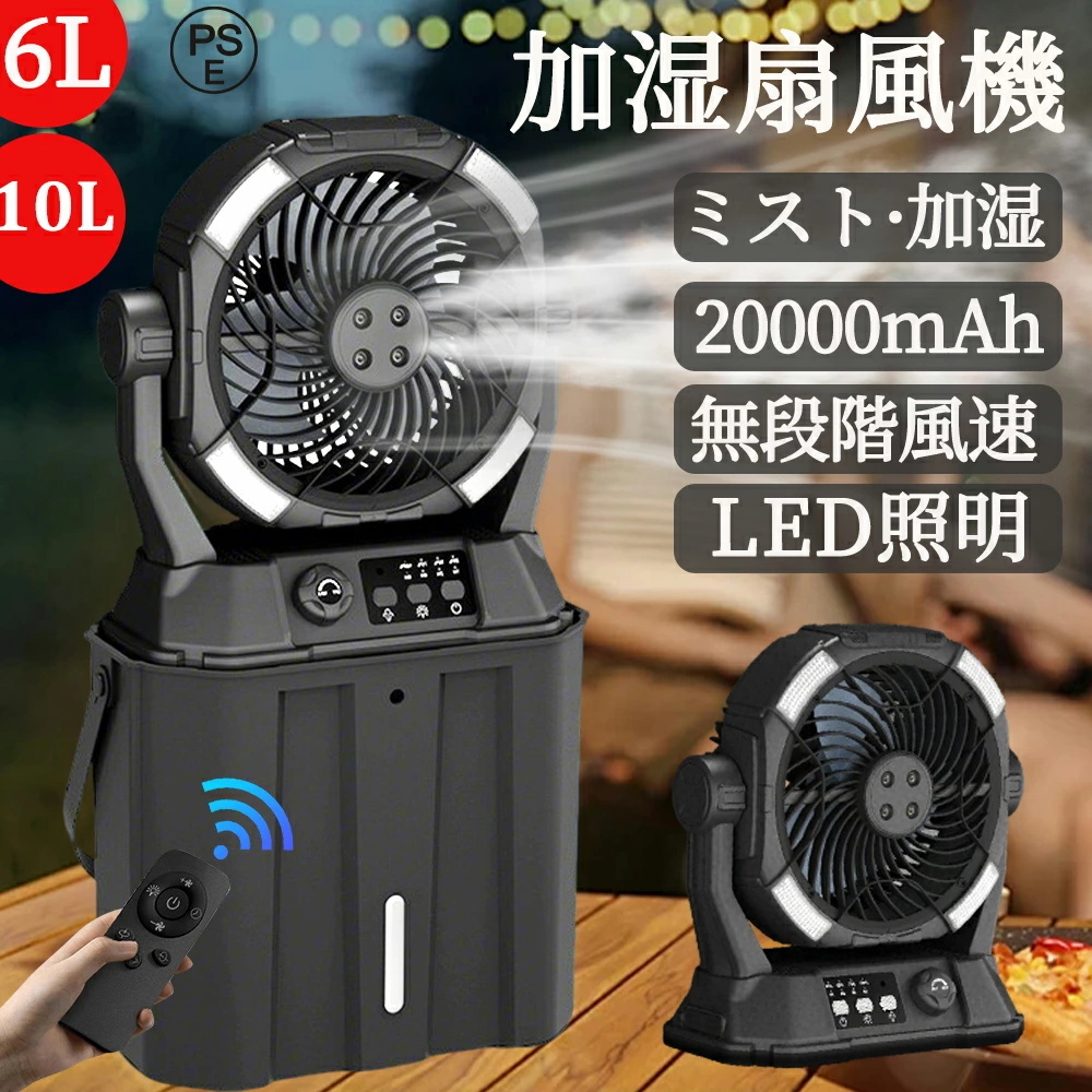 - キャンプ 扇風機 アウトドア 扇風機 冷風機 ミストファン 20000mAh ミスト 瞬間冷却 6L 水タンク 卓上扇風機 静音 USB充電式 加湿 省エネ