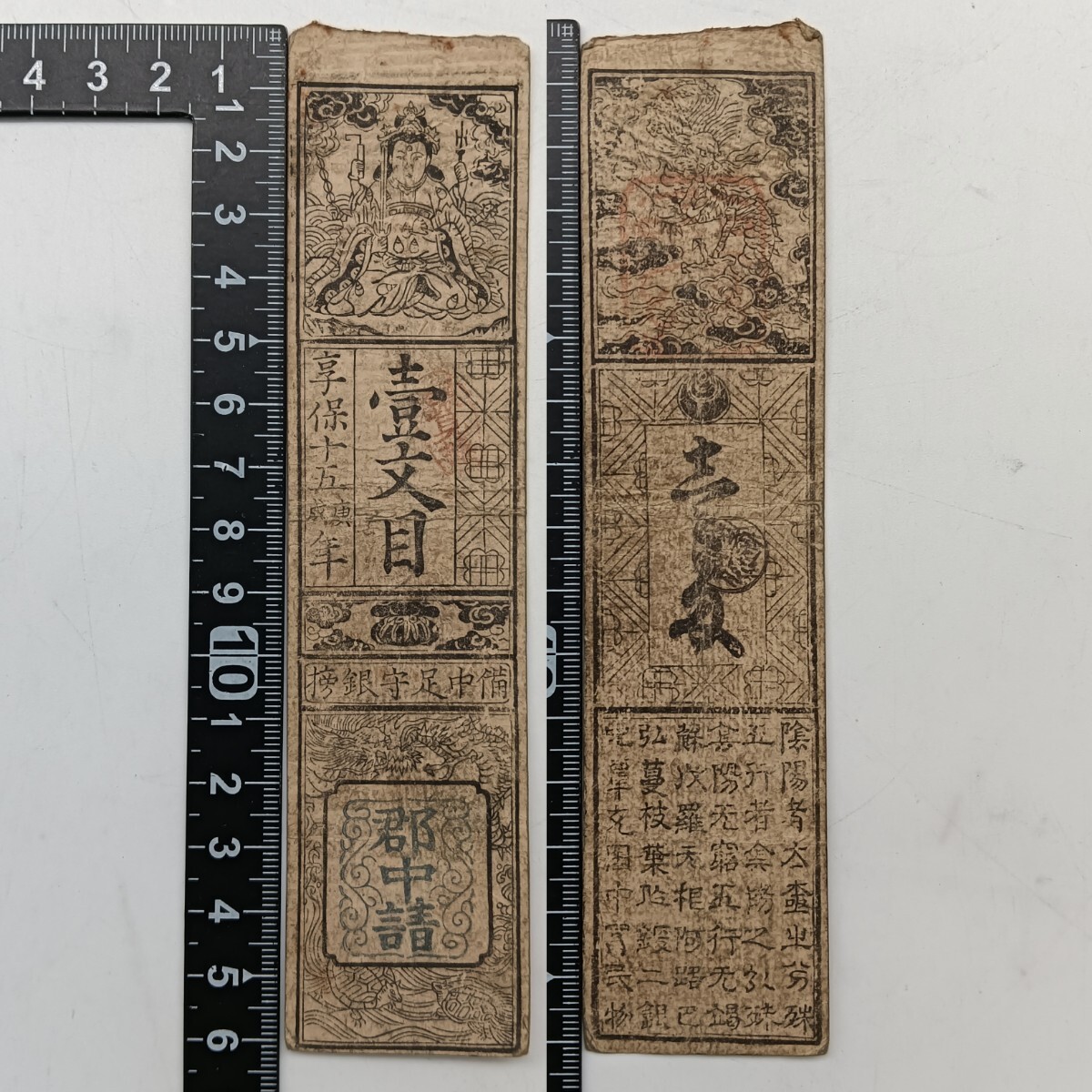 - 【W0066】江戸時代 古札 藩札 私札 備中 足守藩 壹文目 郡中請 銀見極朱印 貨幣 古紙幣 古文書 骨董品 アンティーク