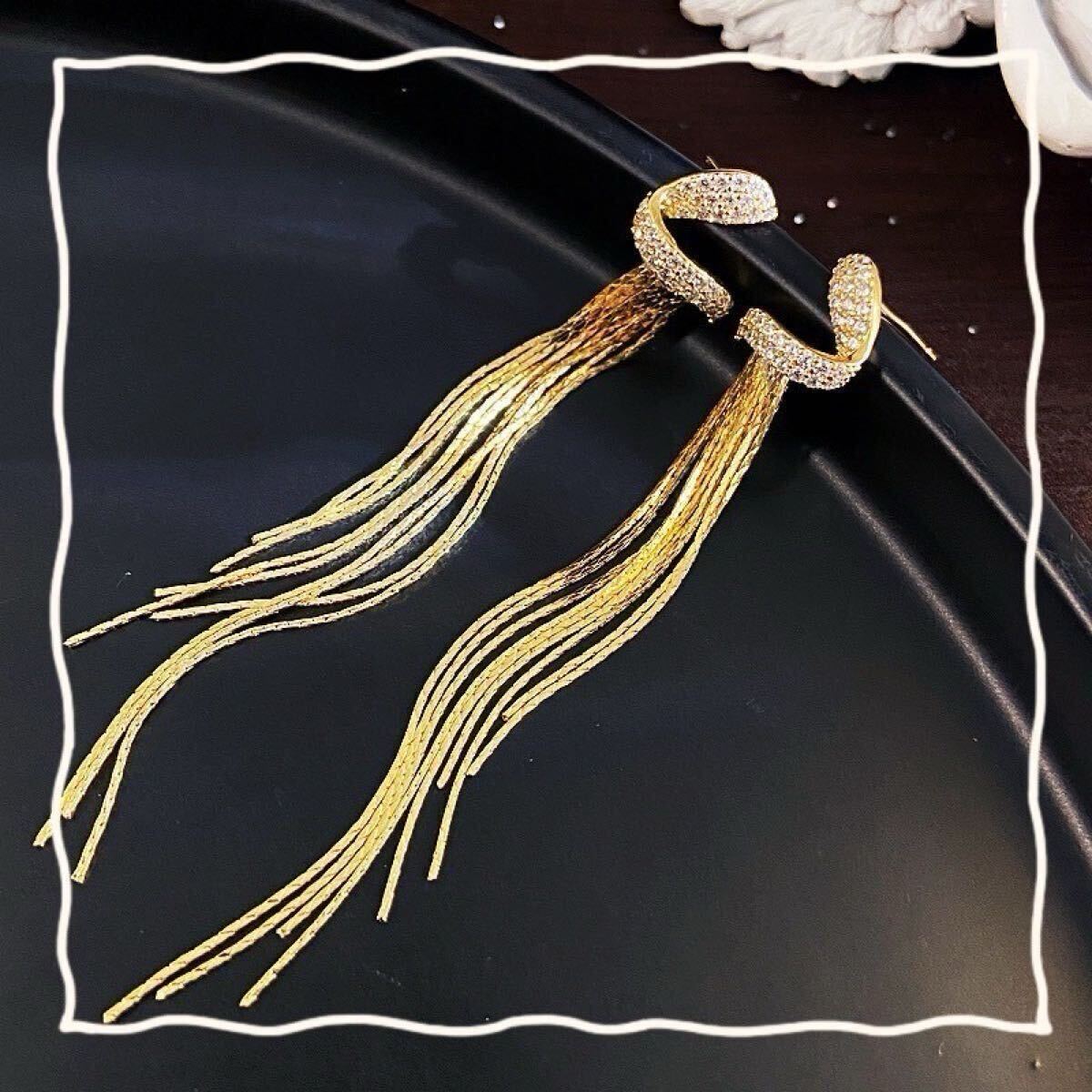 - ロングピアス ラインストーン ゴールド ピアス ジルコニ 揺れるビジュー ピアス大ぶり