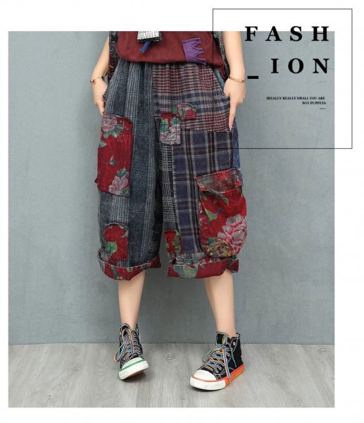 - gl 2508 ズボン パンツ 綿&麻 洋服ミックス アンティーク風 ロマンファッション 縫い合わせ