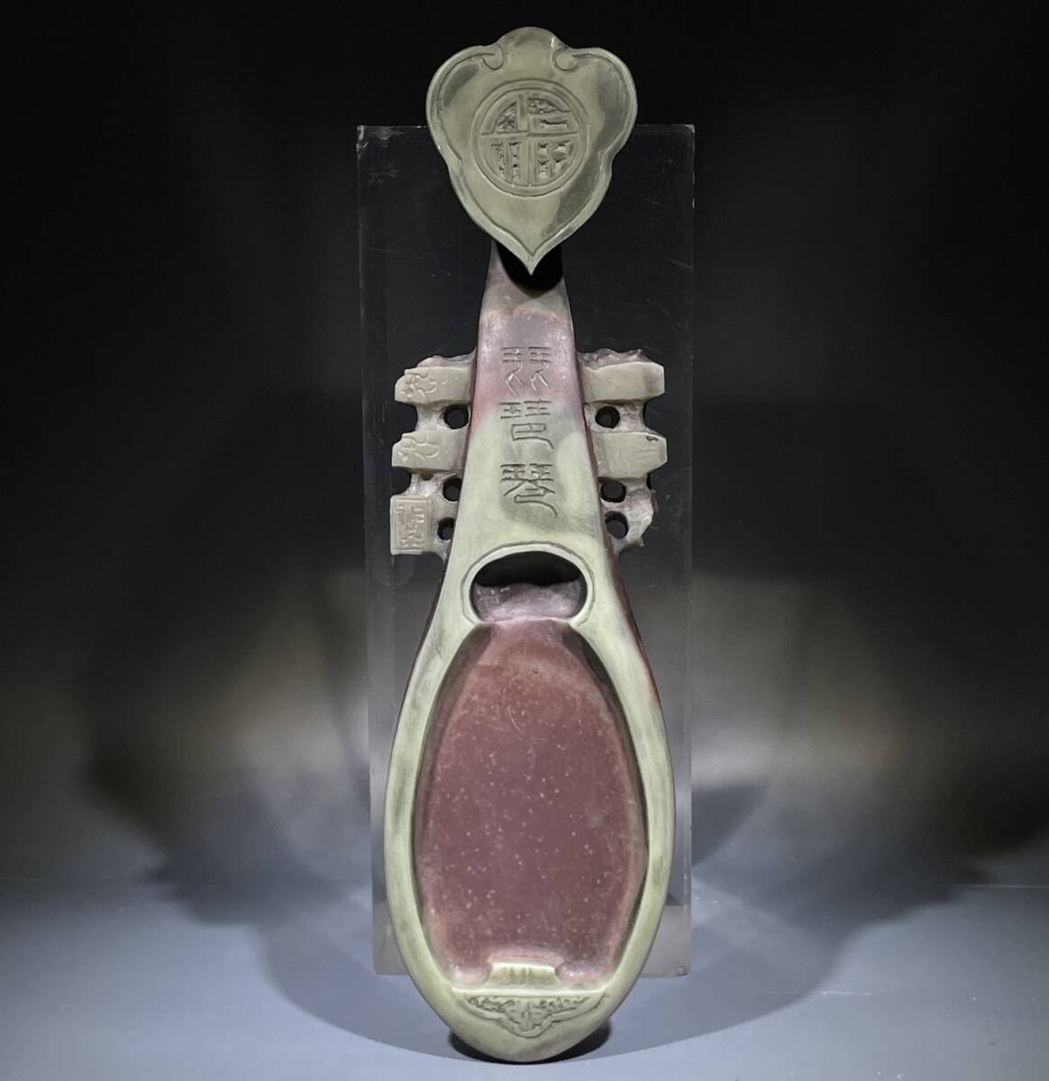 - 旧蔵 中国四大名硯-端硯 本場琵琶紫袍玉帯硯 寓意深刻 彫工精細 包漿醇厚 古硯 文房硯 時代硯 極細工 中国古玩 骨董品 古美味 8.6