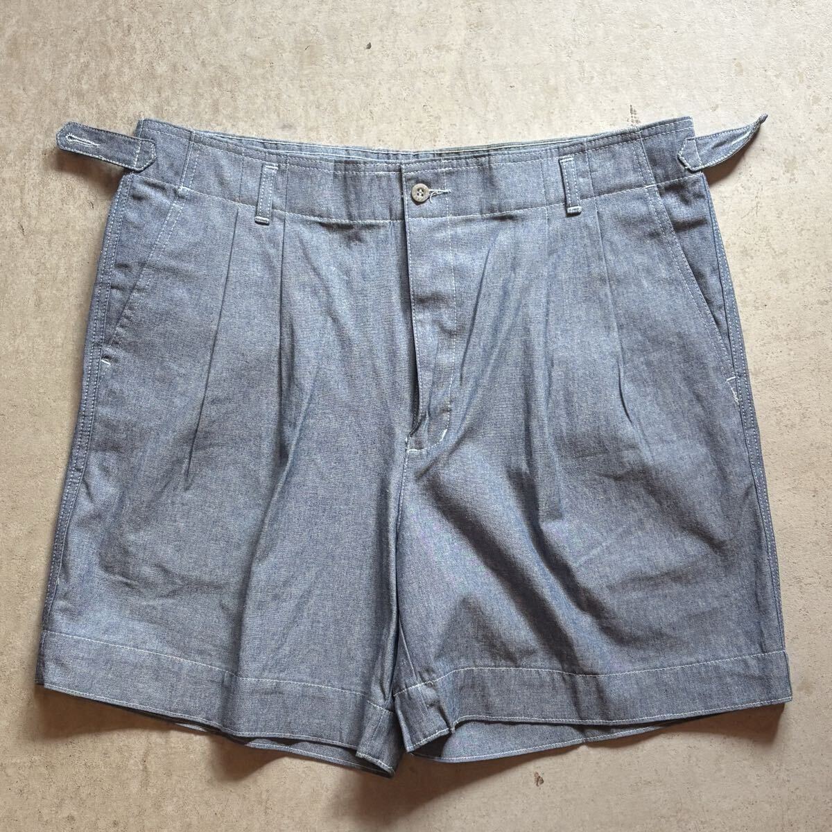 - 【Dead Stock】80s DOCKERS ドッカーズ シャンブレーショーツ ハーフパンツ 短パン メンズ W36 ツータック 青/BLUE デッドストック 新品