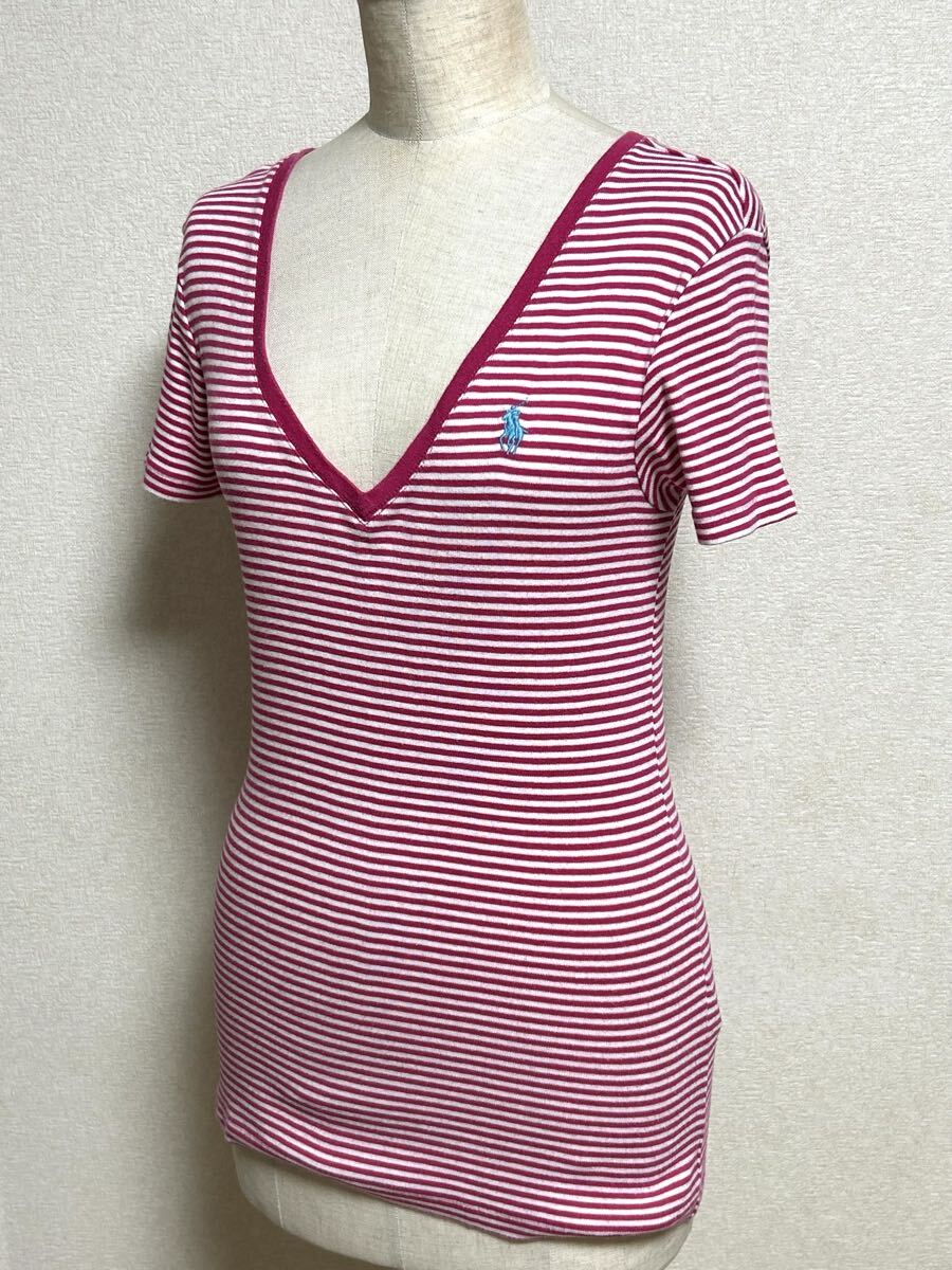 > 【 POLO RALPH LAUREN★ポロラルフローレン】Vネック・ボーダーカットソー・伸縮性・Mサイズ・送料180円