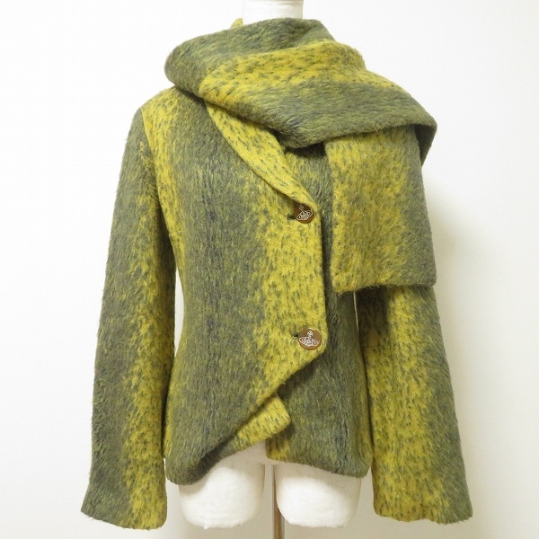 > #wnc ヴィヴィアンウエストウッド レッドレーベル VivienneWestwood RED LABEL ジャケット 40 黄色 グレー モヘア混 レディース [961421]