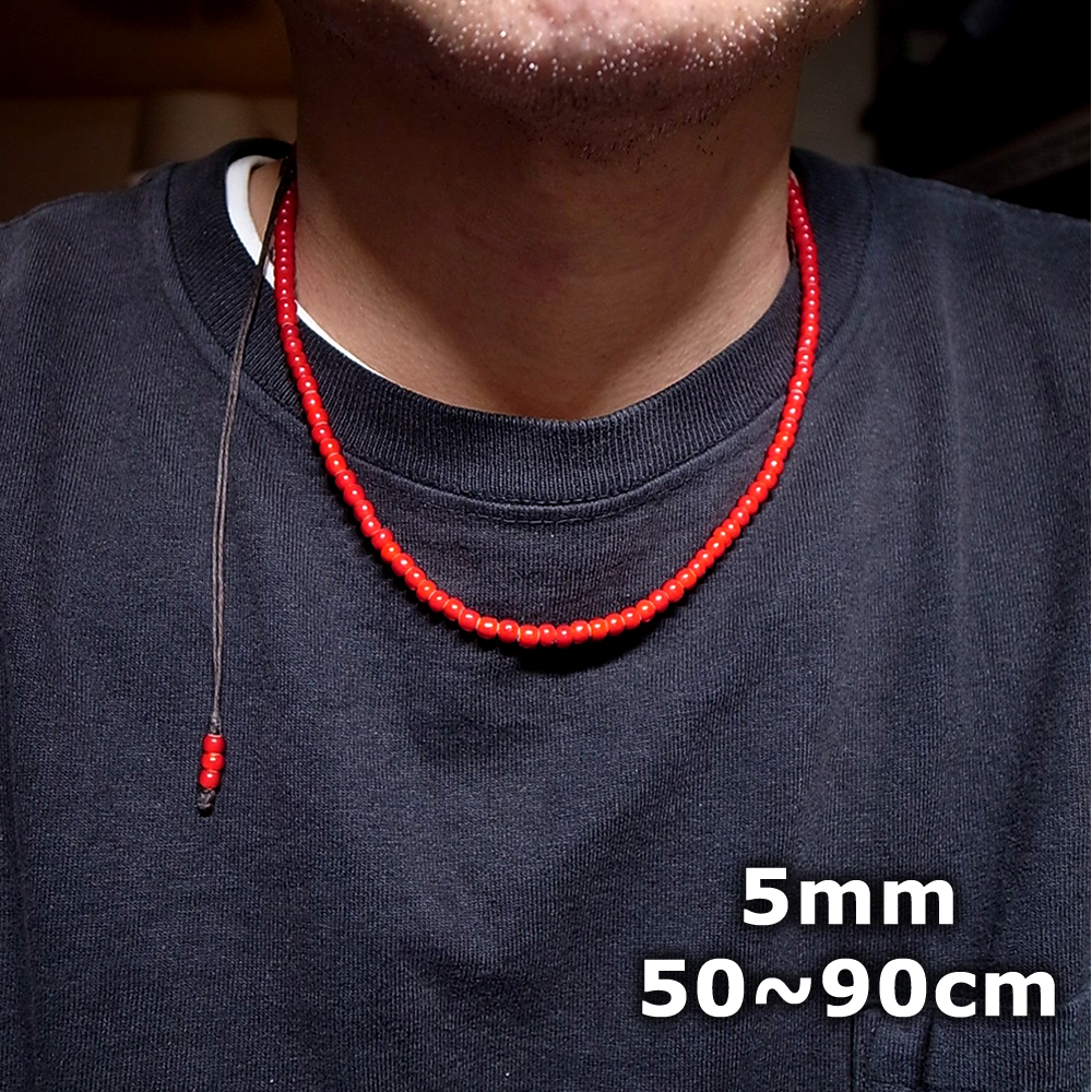 > 5mm ホワイトハーツビーズ ネックレス50cm-DARK RED/ 5mm WHITE HEART BEADS NECKLACE 50- DARK RED